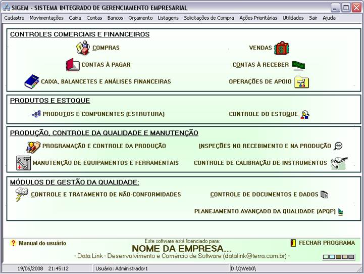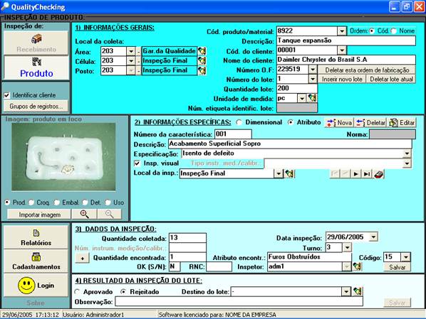 internas de produtos e inspeções de processo (QualityChecking). Cada usuário acessa no programa apenas