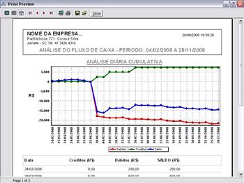 análises gráficas completas dos fluxos de caixa por dia, semana, quinzena,
