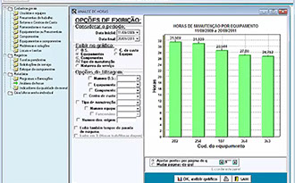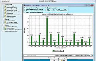 Gráficos de manutenções executadas por setores, máquinas, componentes, tipo de manutenção, totais de horas gastas por mês por tipo de manutenção, por equipes, por equipamentos, por ordens de serviço, etc.