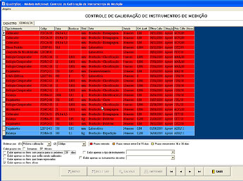 Controle do status de calibração de cada instrumento, indicando aqueles cujas calibrações estão em dia, próximas do vencimento ou vencidas;