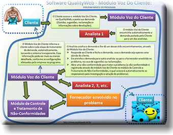 O QualityClient, também chamado de Voz do Cliente, um dos módulos do Sistema QualityWeb e pode ser adquirido sozinho ou em conjunto com outros módulos do sistema. O QualityClient aplica-se ao registro de demandas de clientes, ou seja, sugestões, dúvidas, reclamações e informações sobre devoluções de produtos, oferecendo uma rotina automatizada de gerenciamento de demandas, desde o seu registro (postagem) até a sua solução.
